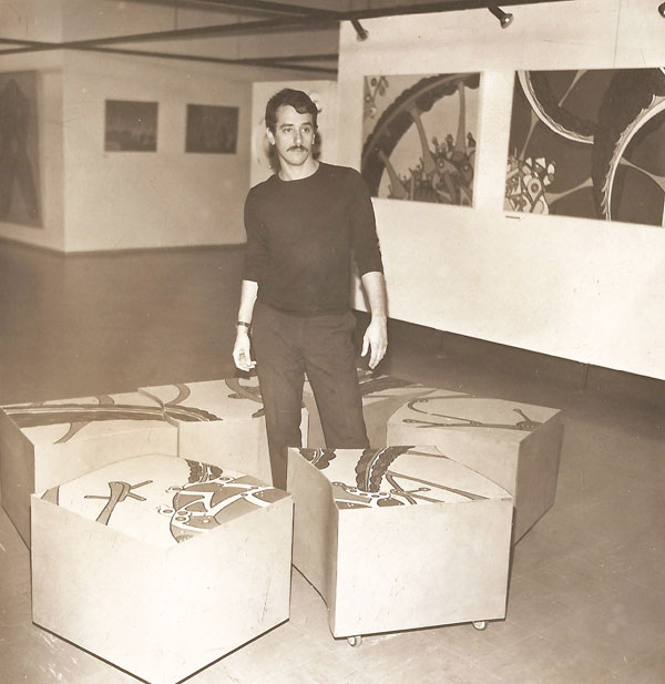 - 1966. Aldir Mendes de Souza durante a exposição de seus trabalhos na galeria Artécnica.