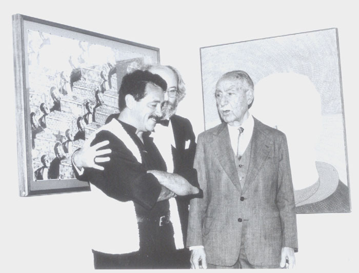 - 1983. Pietro Maria Bardi, Odeto Guersoni e Aldir Mendes de Souza na exposição em homenagem a Bardi, então diretor do MASP